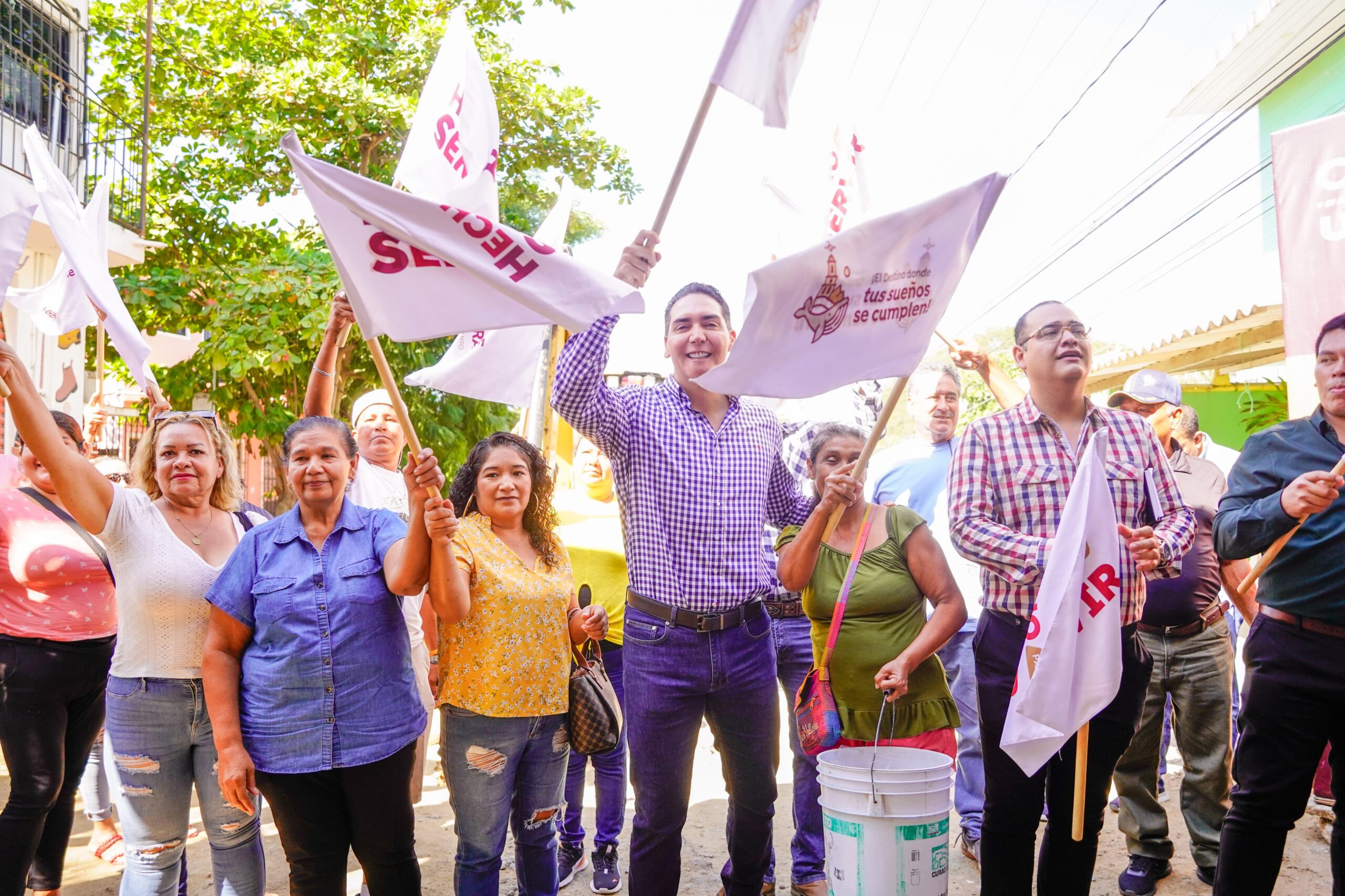 Entre aplausos y porras de “¡presidente, presidente!”, los vecinos dieron la bienvenida al alcalde, quien respondió con humor: “Con esas porras, les voy a tener que pavimentar todo Bucerías”.