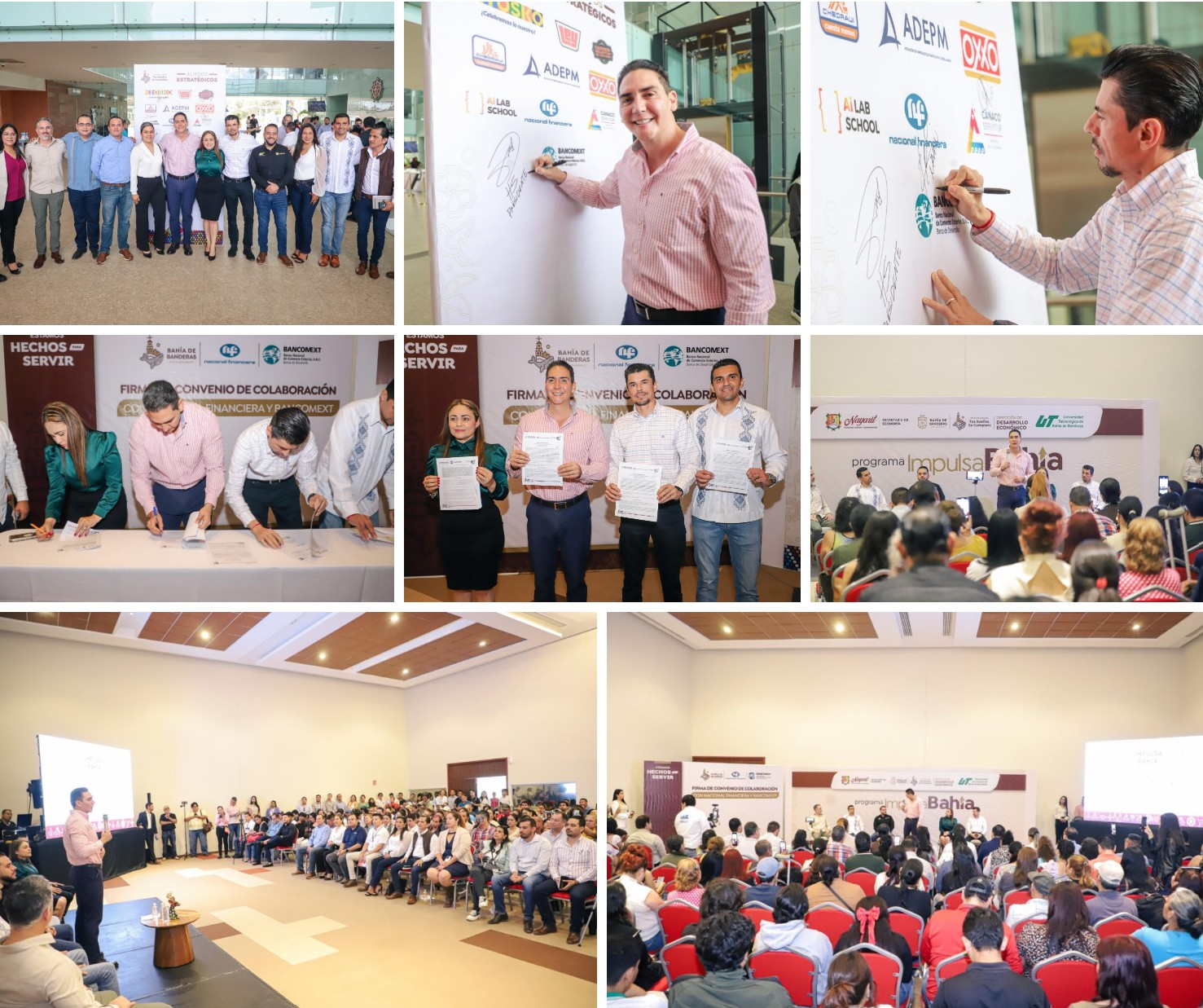 El presidente municipal de Bahía de Banderas, Héctor Santana García, encabezó la firma del convenio de colaboración con Nacional Financiera (NAFIN) y Bancomext, poniendo en marcha el programa Impulsa Bahía, una estrategia clave para fortalecer el crecimiento de los emprendedores y pequeños empresarios del municipio.