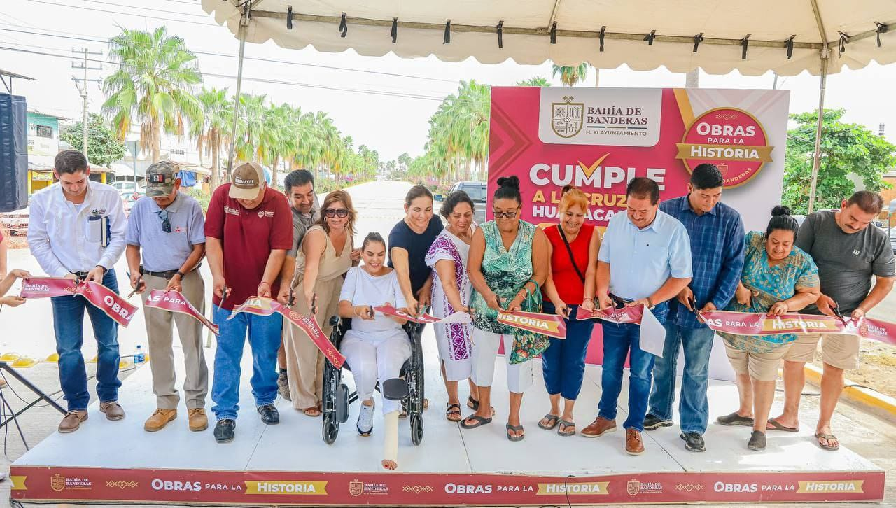 Bahía de Banderas, Nay., 7 de diciembre de 2023.- Este jueves, la presidente municipal de Bahía de Banderas, Mirtha Villalvazo Amaya, hizo entrega de la segunda etapa de la construcción de la avenida principal de La Cruz de Huanacaxtle.