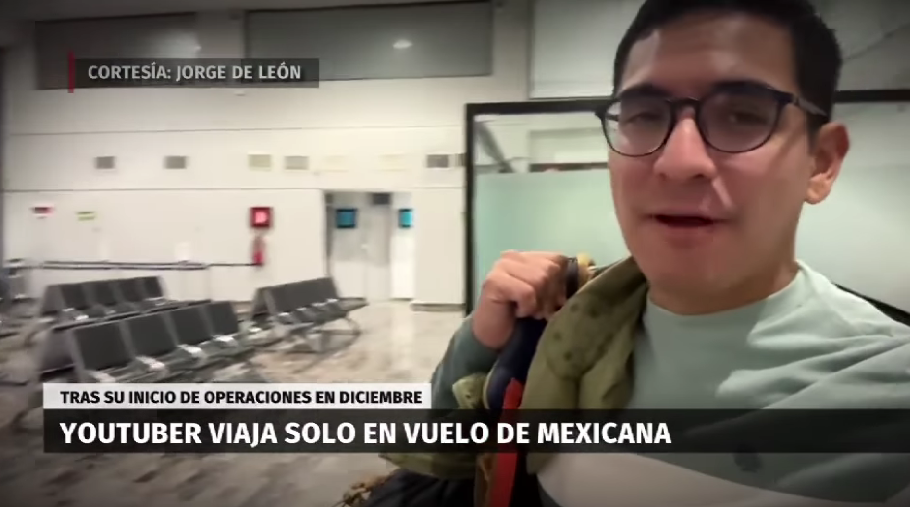 Completamente sólo, viajó Jorge de León, youtuber que compartió en sus redes sociales cómo fue su experiencia de volar en un avión de Mexicana de Aviación en una aeronave sin más pasajeros.